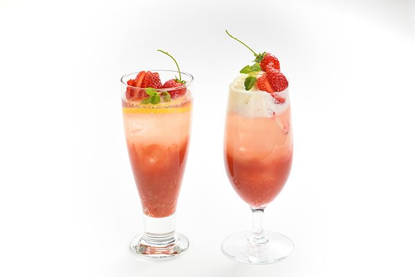 程よい酸味と甘味がマッチした「いちごスカッシュ」と「いちごフロート」を