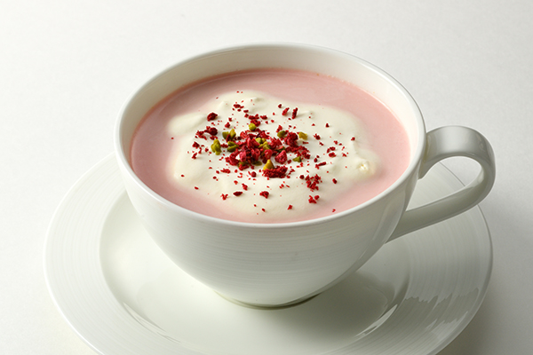 ストロベリーの甘酸っぱさとホワイトチョコレートの優しい甘さがマッチしたあたたかい一杯。