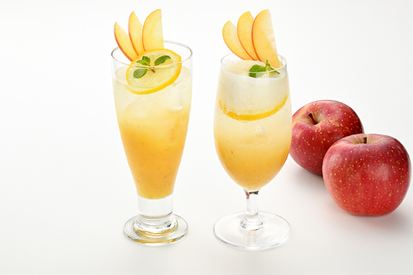 「りんごスカッシュ」と「りんごフロート」です。今が旬のりんごを存分にお愉しみください。