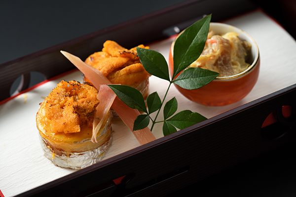 【先 付】 新順才 とろろ鮑 軸防風 山葵 木の芽